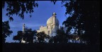 Interessante l'inquadratura della mitica architettura Indiana attraverso il nero profilo degli alberi e della vegetazione, con quel bel colore blu del cielo..