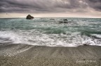Sembra scattata con un grandangolo e tagliata ai lati,la forte deformazione dell'orizzonte appare incongruente con le onde e l'effetto non è piacevole(almeno a me non piace )