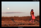 La luna, quasi adagiata sul cuscino di nuvole, veglia sul cammino di questa donna. da dove viene ? dove va? solo la luna lo sa!