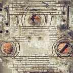 Le geometrie semplici del cartellone e della colonna che si nota in trasparenza, che si confrontano con le linee intricate della strada e del palazzo.