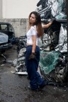 la foto fa parte di un progetto sulla bellezza femminile, e mi piaceva l'idea del contrasto tra la sensualità e la bellezza della modella e la fatiscenaza della location dovuta ai rottami, alle carcasse delle macchine e quant'altro, essendo questa uno sfasciacarrozze.