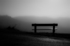 La sensazione è che quella panchina sia sull'orlo di un precipizio enfatizzato dalla coltre di nebbia e solo con un lieve accenno di una costa dall'altra parte.