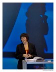 La foto la vedo puramente descrittiva di un evento ( una conferenza mi pare di capire); non traspare un particolare momento (poco significativa l'espressione della donna), non mi appaga sul piano comunicativo, quanto meno su quello estetico, per via del rumore che invade l'intero fotogramma.