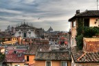 Visuale dal rooftop dell'albergo Palace in montecitorio guardando verso sud. La chiesa è sant'Ignazio, dietro la torre pendente ed il vittoriano. La casa sulla destra è privata (!). Gli uccelli sono un gadget in più...  |