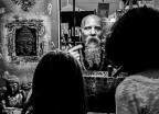 Dario il ragazzo con la bambina erano circondati da molte persone, quindi per realizzare la foto mi sono dovuto infilare tra la gente. Al momento dello scatto mi sono concentrato sugli occhi immobili della bambina e su quelli concentrati del ragazzo, ritengo che spostandomi sulla dx avrei perso l'occhio del truccatore, a mio modo di vedere un dettaglio molto importante.