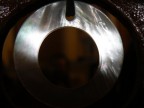 questa foto è un esperimento come dici tu..ho provato a fare uno scatto dall'interno di un vaso ornamentale contenente due fori da cui pendevano due cerchi in madreperla...dato la distanza molto ravvicinata della macchina dal soggetto che volevo fotografare il taglio non poteva essere molto più ampio di quello che vedi...il riflesso che vedi è dato dalla luce del flash che ha illuminato il vaso dall'interno.