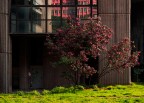 Questa fotografia risale a marzo ed era la prima volta che vedevo la fioritura anche molto abbondante di questo albero, certamente la composizione è giocata sul richiamo di colore rosso della pianta col riflesso della costruzione e pensa che sono gli unici colori che si trovano in questo contesto, poi è tutto grigio cemento e vetro, ma anche la luce che ho trovato ha giocato un ruolo importante.