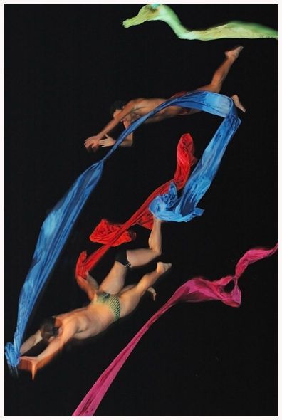 Scatto dal punto di vista compositivo molto interessante (è stata tua l'idea dei lenzuoli colorati?) peccato per il mosso troppo presente e per l'attimo scelto in cui scattare:se i tre atleti fossero stati in posizioni diverse il tutto sarebbe risultato un po'piu'gradevole.Ma dimmi un po',è uno scatto in notturna?oppure hai lavorato di postproduzione?
