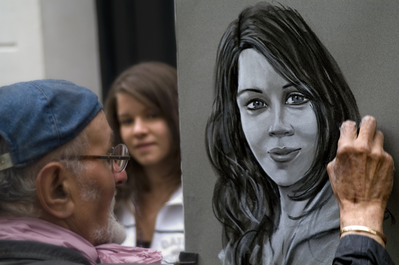 un ritrattista fa un ritratto e un fotografo ritrae lui mentre lo esegue.... Surprised