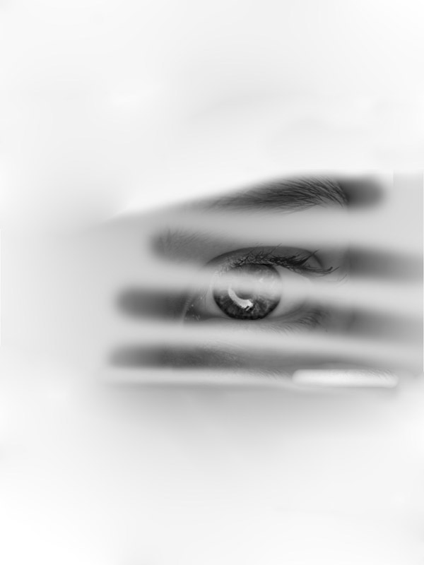 con lo strumento copia in una zona piu in basso dello stesso file dove era quindi gia presente un'area di sfumatura ho copiato l'occhio stesso a strisce alterne che ha dato l'effetto che si vede nella foto