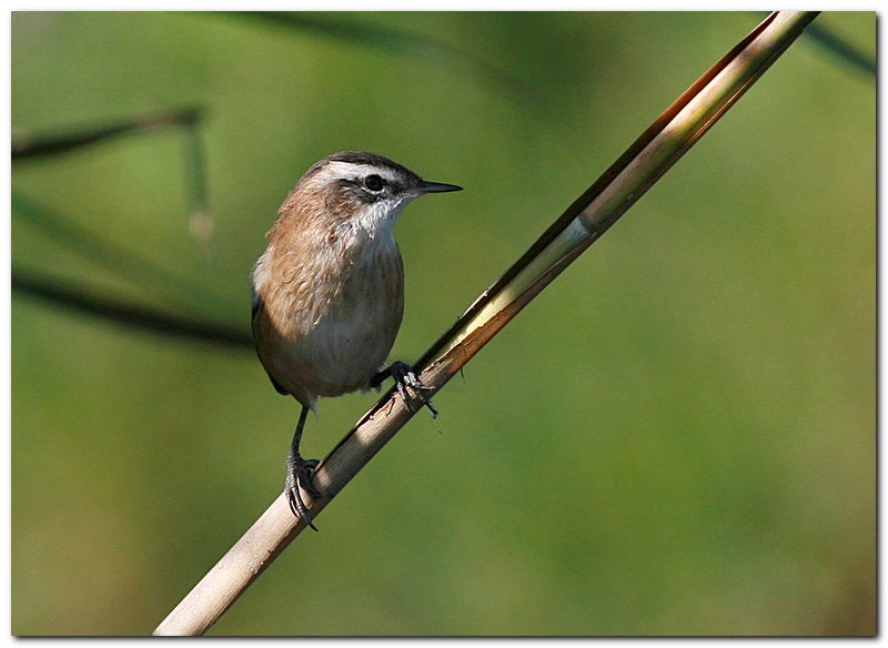composizione superba!!! soggetto decentrato quel poco che basta a dare dinamicità, la linea immaginaria che parte dall'occhio dell' uccellino (non so aiutarti sull'identificazione ) che va ad incrociare la canna diagonale proprio in un punto di forza dell'immagine...