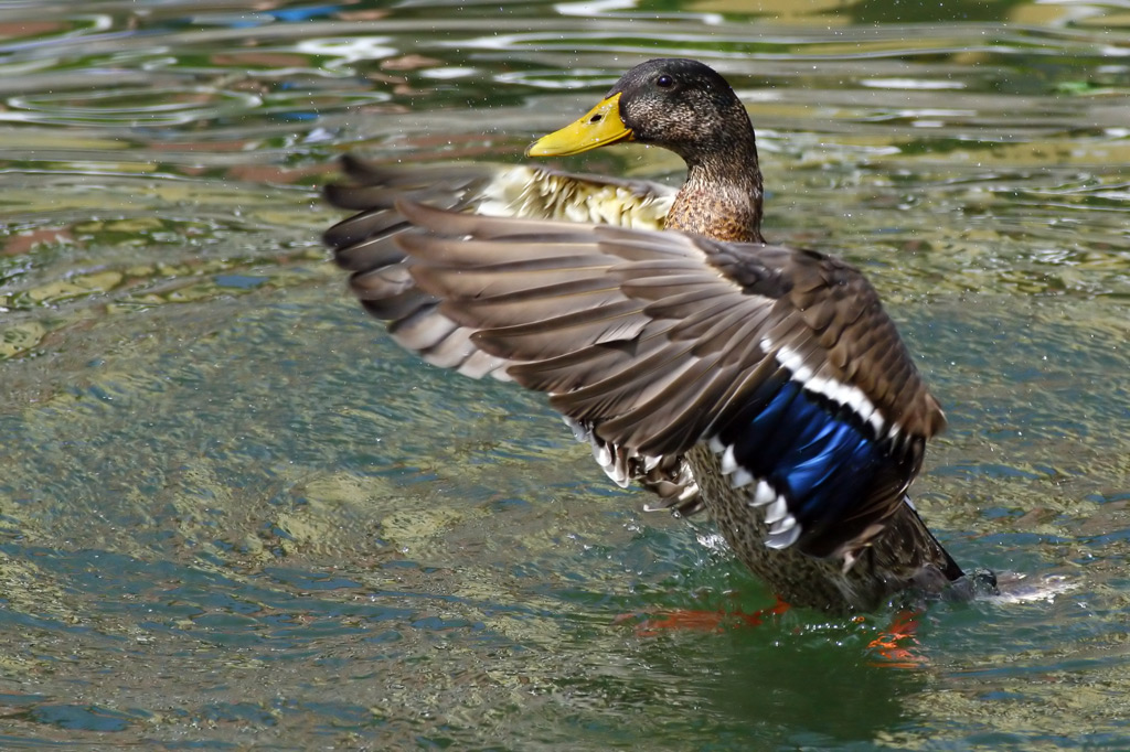 L'anatra si stava per caso scrollando le ali come fanno quando sono entrate da poco in acqua?
