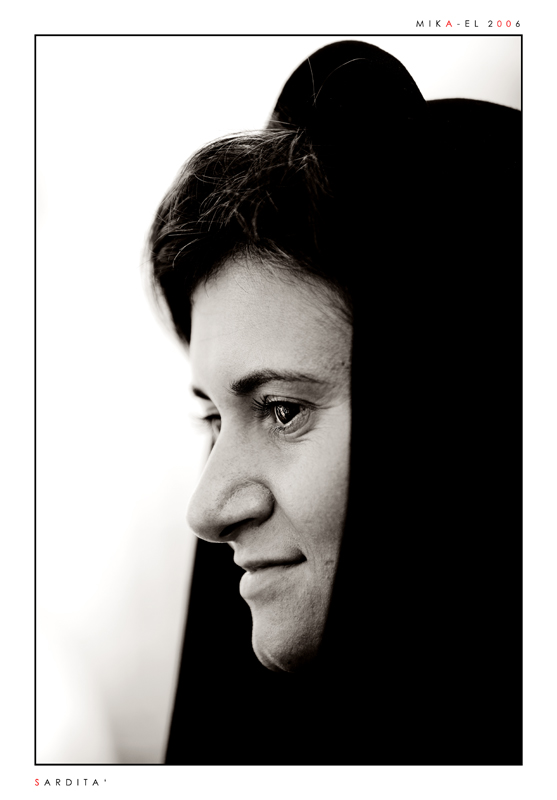 Sardità...mah micca sembra sarda questa, potrebbe essere di qualsiasi paese anche continentale, comunque per me è una foto composta bene, un bel taglio e bella messa a fuoco sull'occhio. Mi piace così in bianco e nero con dei bianchi puliti e neri profondi. Veramente carina.