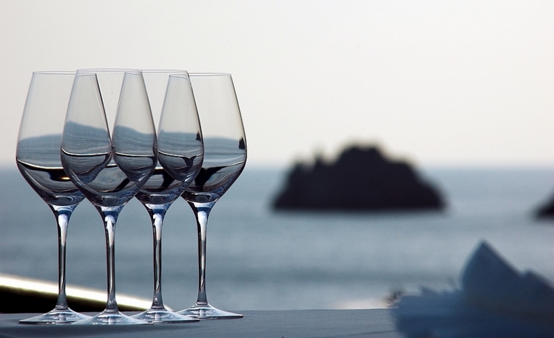 Troppi elementi di disturbo quella cosa in basso a sinistra e quel tovagliolo(?) appoggiato a destra creano confusione.. la sola presenza dei bicchieri e dello sfondo con questa dominante fredda avrebbe funzionato molto meglio.. se ne hai la possibilità rifalla.. potrebbe venire fuori qualcosa di ottimo!