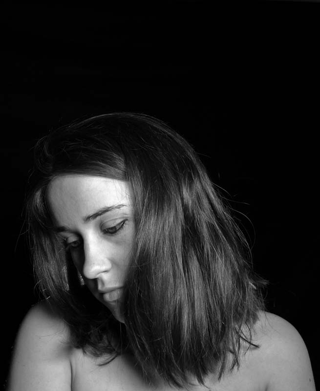 Spazio sopra non sempre fa male. Ma non in questo caso. Il nero dello sfondo si confonde con quello dei capelli. L'avrei inquadrata più di 3/4