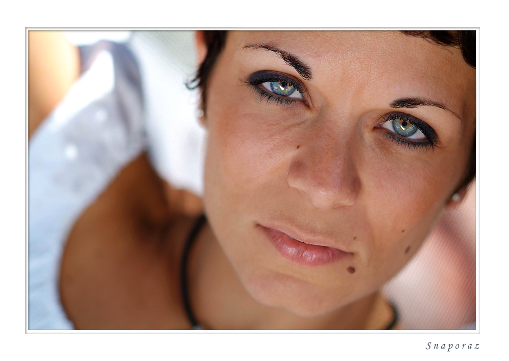 Tranquillo pomeriggio estivo al lago. Ore 18:00 circa, luce alle spalle e uso di un pannello riflettente (propriamente il parasole argentato della mia auto, che potete vedere riflesso nelle pupille).