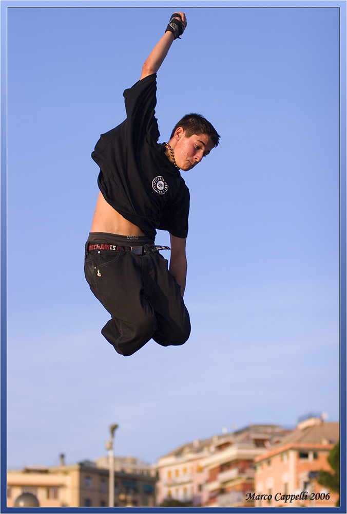 alla foto manca un punto di riferimento vicino al soggetto per dare le proposrzioni del salto, la città sotto è una cosa troppo distante per poterla considerare un riferimento..