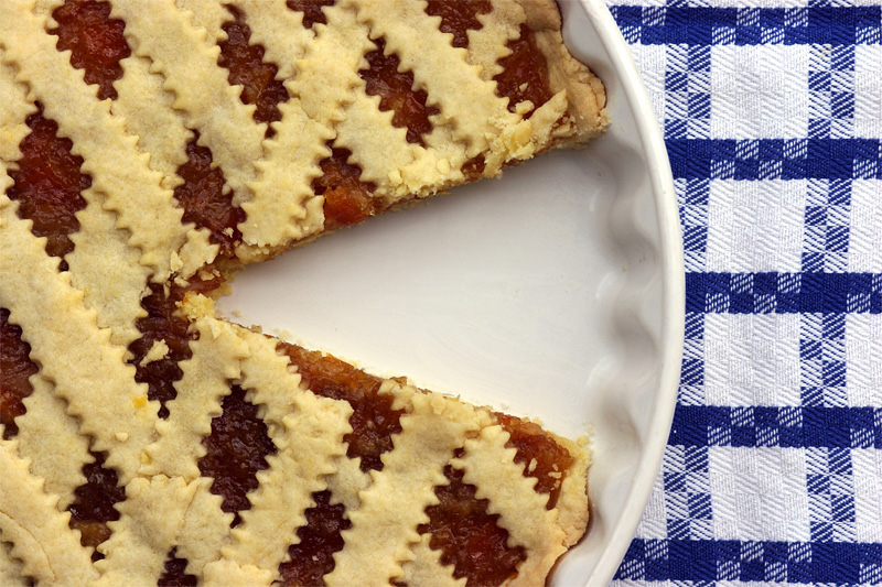 però la foto ha qualcosa che non mi convince. non so se è la saturazione o la temperatura dei colori, o piuttosto il tipo di luce che hai usato, ma quella crostata è troppo fredda. la pasta è grigina e spenta.