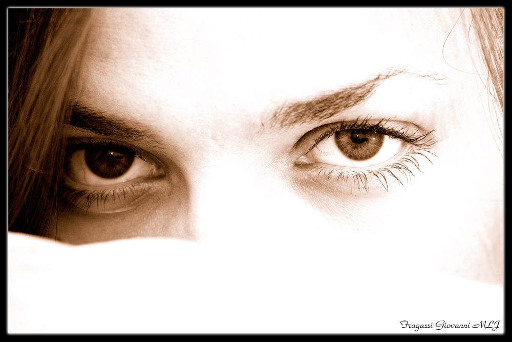 ciao, l'occhio sinistro piu' scuro e' stato voluto, in quanto la luce arriva da dx, per cui e' normale che il sx sia piu' in ombra.Diciamo che il soggetto e' stato illuminato con un taglio laterale(flash).Da illuminotecnico penso che schiarire la parte sx farebbe diventare l'immagine piatta togliendogli profondita'.