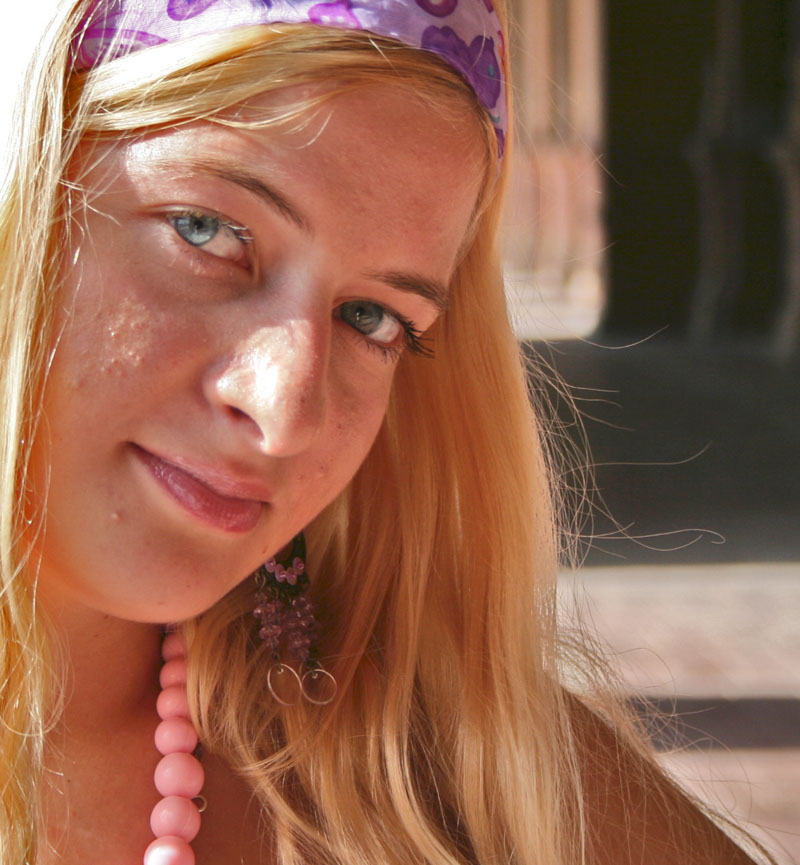 4 Ho applicato una sfocatura (col gaussian blur) al livello della pelle e, con un pennello a opacità ridotta (40% mi pare) agendo sulla maschera di livello ho ridotto l'opacità di alcune zone della pelle (lati del naso, contorno occhi, pieghe del collo) in modo che la sfocatura non si impastasse apparendo più "naturale"