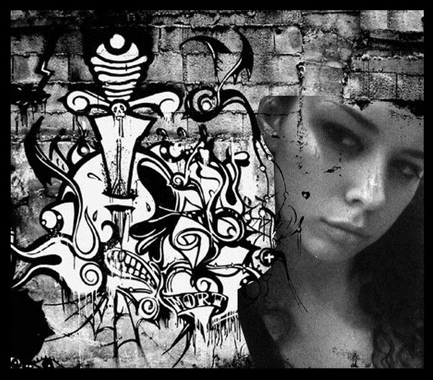 io l'avrei smarginata bene applicando poi anke un po' di trasparenza, in modo da farla sembrare parte integrante del graffito |