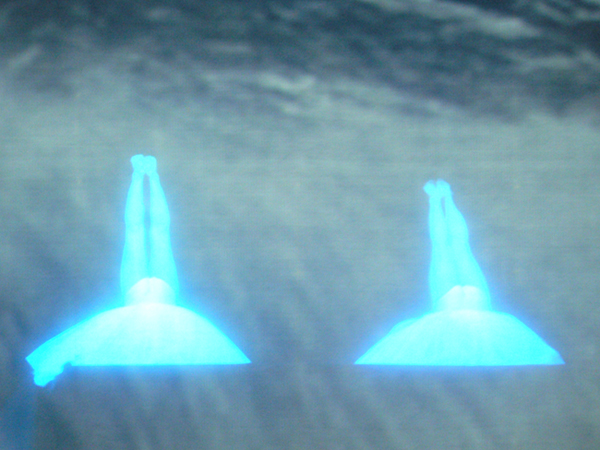 vedo le gambe di qualcuno che si tuffa... il fondo sembrano onde del mare... le "coppe" non capisco bene invece...