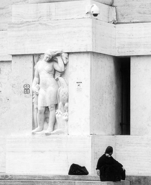 La donna seduta è un pò sacrificata nell'angolo in basso, e questo sposta immediatamente l'attenzione verso il marmo, che però ha i bianchi leggermente troppo chiari e quindi non risulta perfettamente leggibile.