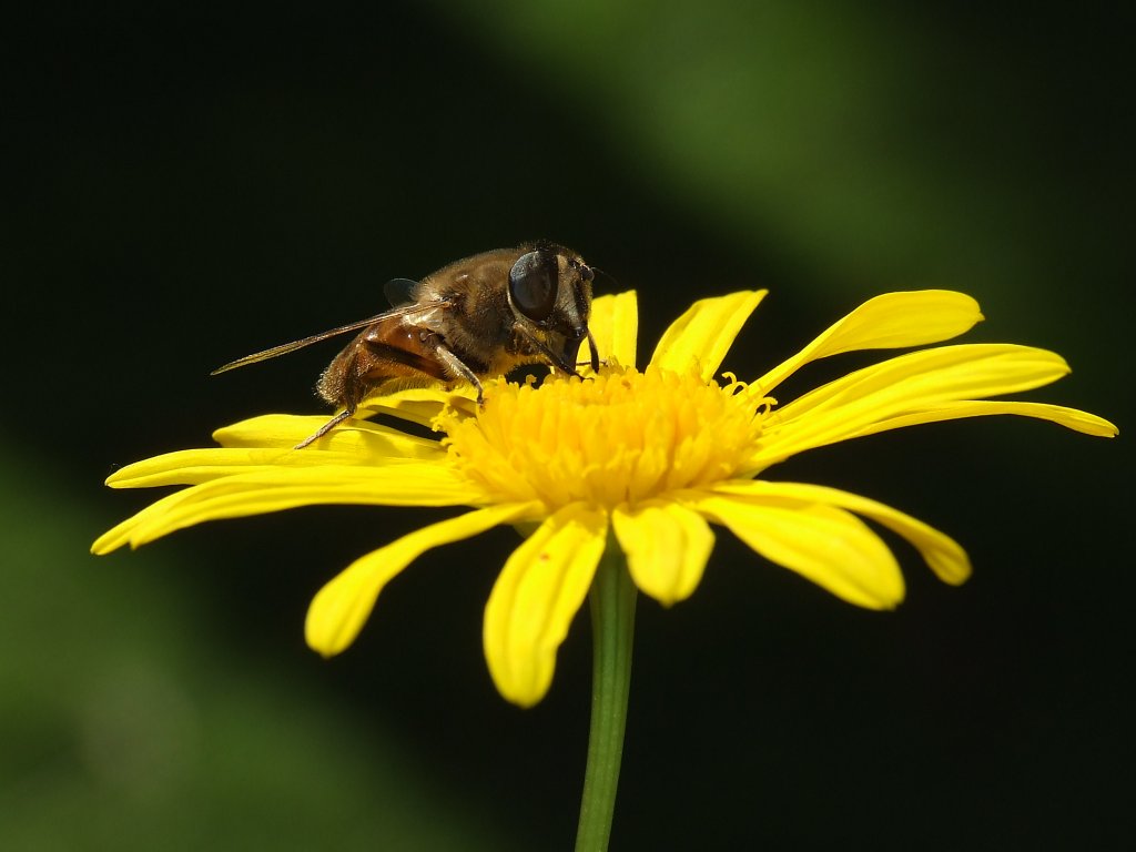 E' vero che la posizione dell'Eristalis è un po' centrale ma splendidamente incorniciata dai 2 sipari verdi e perfettamente centrata sulla striscia nera dello sfondo