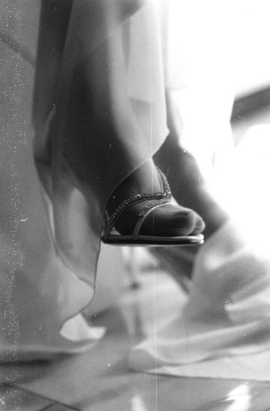 Il gesto in sè e di un eleganza, tra velo, tacchi, posizione delle gambe e del piede, molto femminile, molto gradevole.
