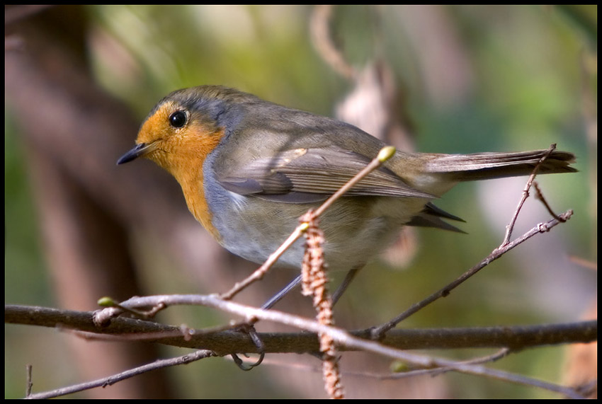Hai fatto benissimo a scattare, malgrado la presenza di quei fastidiosi rametti, nel punto in cui il pettirosso ha deciso di posarsi.