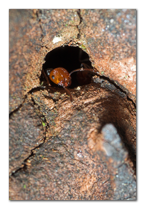 Infatti l'obiettivo entrava letteralmente nel cavo del tronco in cui ho trovato il formicaio per cui il fattore difficoltà mi ha reso molto orgoglioso di questa foto, motivo per cui ho deciso di lasciarla al naturale, con solo una limatina alle alte luci inevitabilmente forti.