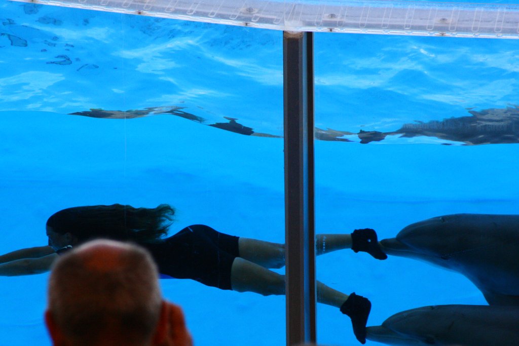 ..... e avrei tentato una composizione sul riflesso ( sopra ) della ragazza con i delfini