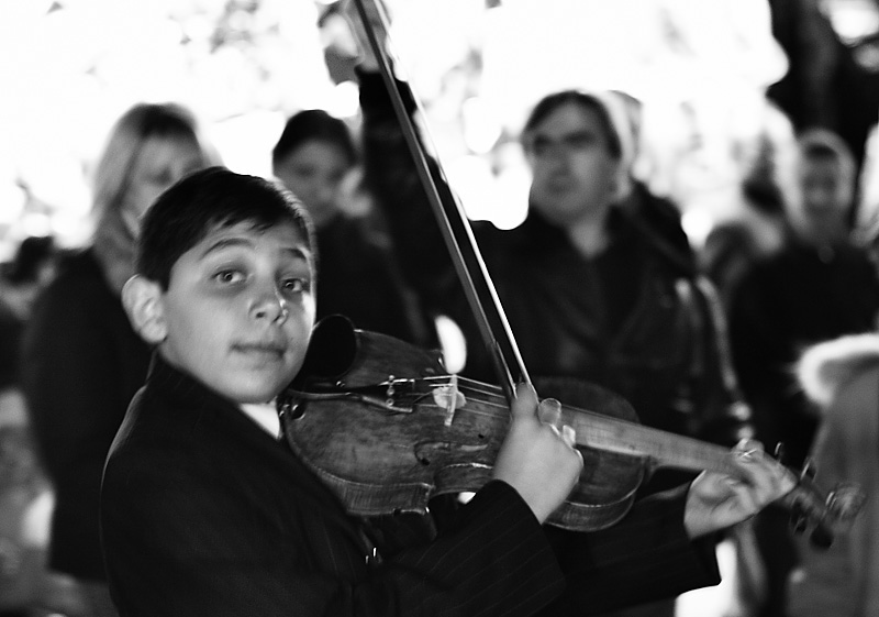 Sinceramente questo mosso non mi piace per niente: è vero che può trasferire l'idea del movimento musicale, ma qualcosa di nitido (ad es una mano) sarebbe stata migliore perchè avrebbe consentito di focalizzare l'attenzione sul punto fermo, per comprendere il mosso di tutto il resto.
