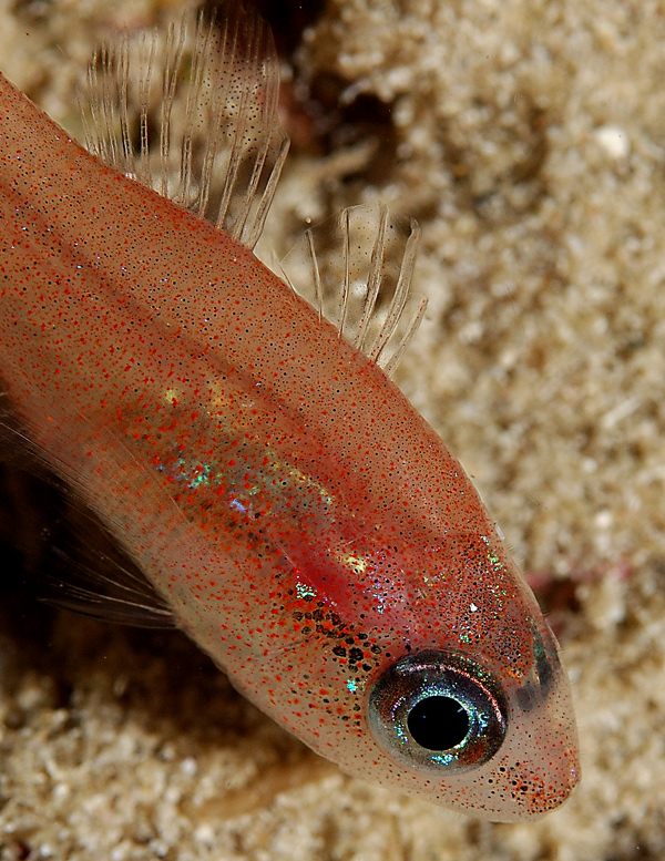 E' la prima volta che riesco a vedere i cromatofori; visti dal vivo sono dei piccoli e delicati pescetti rosa; qui si vedono gli organi interni, le pinne dorsali che sembrano di cristallo ...