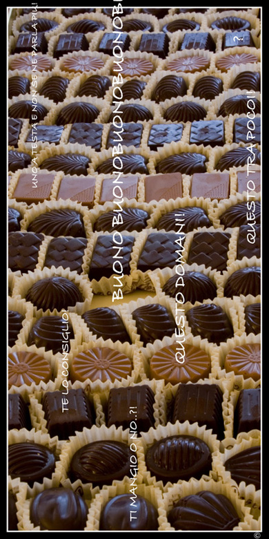 Davanti a una scatola infinita di cioccolatini che mi è stata regalata...
