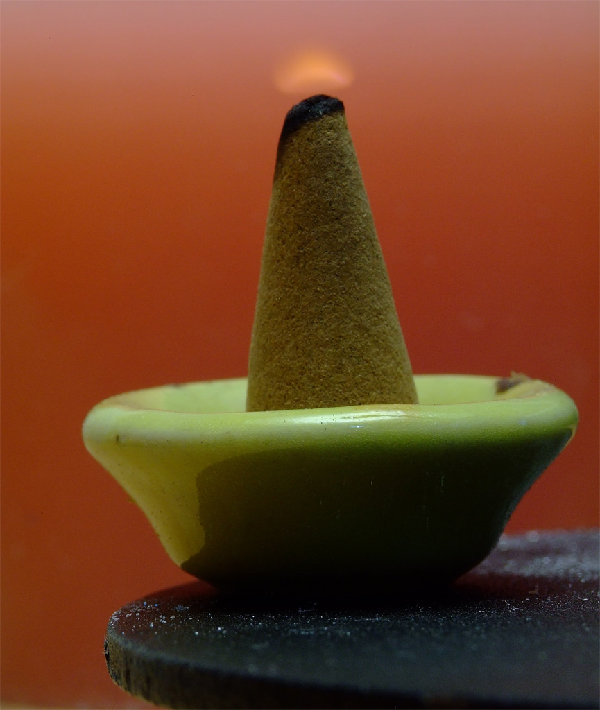 hehe grazie dei commenti è semplicemente un incenso appoggiato nel suo piattino bruciatore e sulla base della mia lampada da tavolo con dietro una candela Ok!