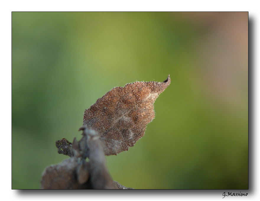 | sfondo morbido e delicato dai vivi colori che fa da cornice ad una foglia ormai morta. quoto per il pezzettino di foglia sfuocata in basso.