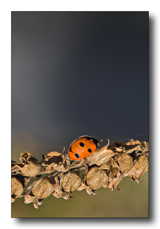 Molto bella la composizione e il doppio colore dello sfondo...però al mio monitor la coccinella non risulta molto nitida Imbarazzato