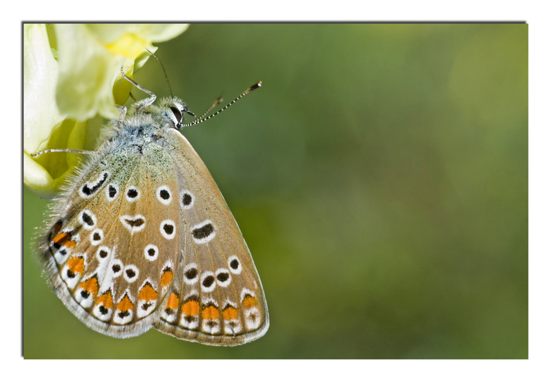 anche lo sfondo sfuocato e vellutato valorizza questa licenide.