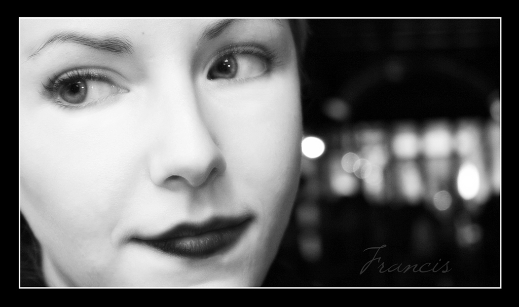 Dietro c'e' un bellissimo sfocato. Bella l'espressione retro',il viso.