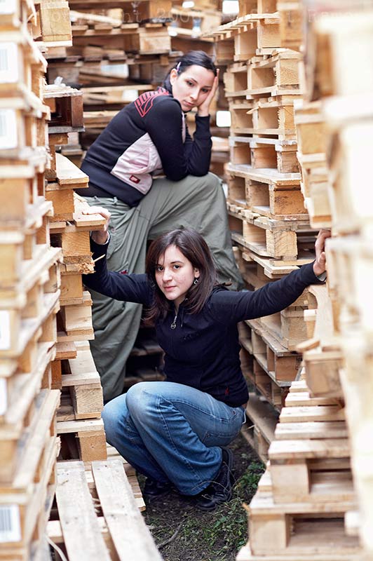 Quello che al momento trasmette la tua foto è quello che potrebbe suggerire un'istantanea di due giovani impiegate in un deposito di pedane di legno colte in momento di pausa da un collega.