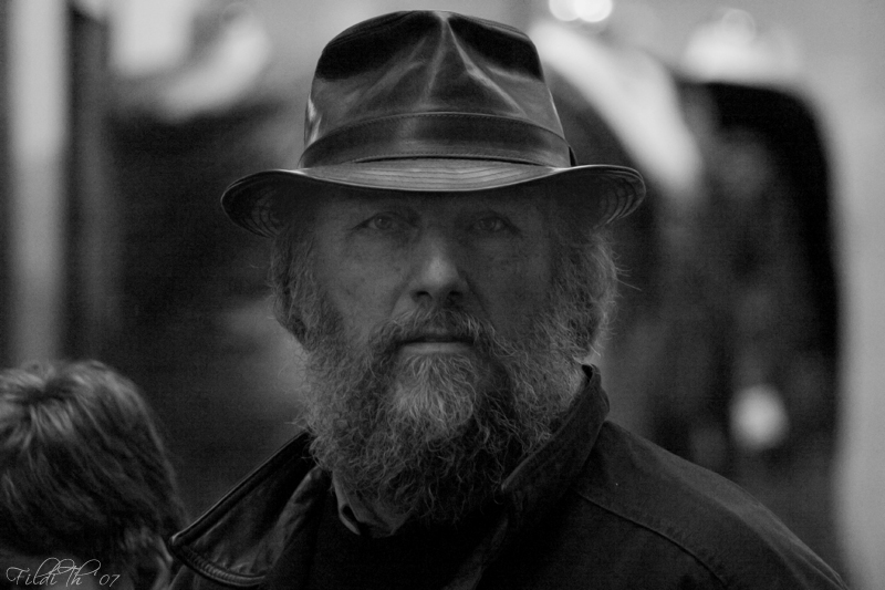Rigiro l'intramontabile suggerimento: allargare, allargare, allargare ... così è uno scatto da paparazzo, che può produrre una bella immagine e celebrare una faccia interessante come questa, ma che cancella tutto il mondo che gli sta intorno.