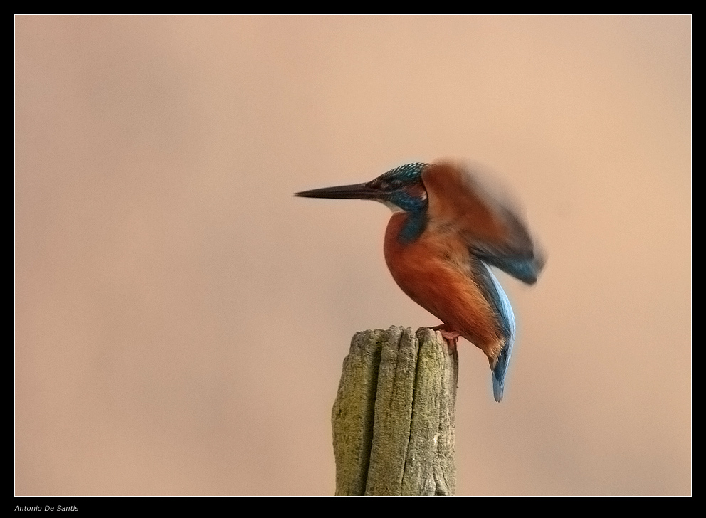 P.S.: è simile ad un quadro (olio su tela) che ha fatto mio padre con il martin pescatore con le ali a riposo posato su un tronco d'albero |