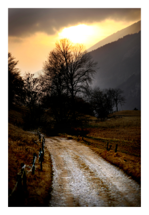 peccato per il mosso ma in questo modo l'occhio cade ancora di più sulla strada e lo steccato vicino. Il colore finale è davvero bello.  |