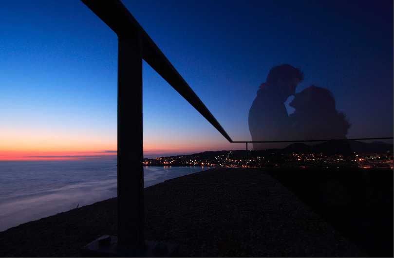 bella composizione, colori, il muretto no mi disturba..anzi, la linea da seguire mi piace, mi porta all'abbraccio degli amanti..