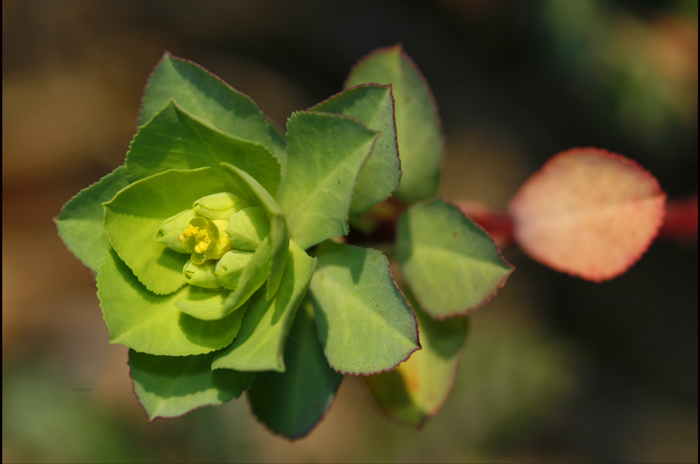 mi piace la luce. trovo azzeccata anche la composizione. la fogliolina rosa secondo me è un elemento che ben bilancia lo scatto: come diceva luciano riempie uno spazio altrimenti vuoto, non è a fuoco e quindi non ruba la scena ed ha un colore che stacca dal resto dell'immagine, apportando un elemento di diversità che ci sta proprio bene.