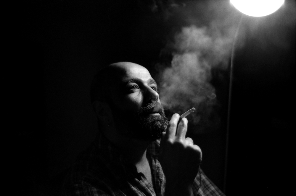 Bello il b/n, bella l'espressione, il fumo...l'unica cosa che mi dà fastidio è il filo della lampada...che si può benissimo nascondere!