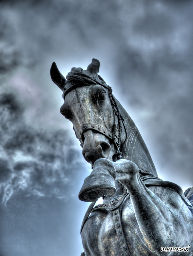 Vista la sua inquadratura il cavallo è risultato molto sottoesposto mentre il cielo era a limite di bruciatura (era una giornata alquanto coperta ma luminosissima) e quindi ho creduto opportuno ricorrere all'HDR;dopo aver giocato un pò con i settaggi di photomatix,mi è sembrata carina questo tipo di elaborazione ke donava ,a questo scatto alquanto comune come tu giustamente hai evidenziato,un qualcosa di particolare.