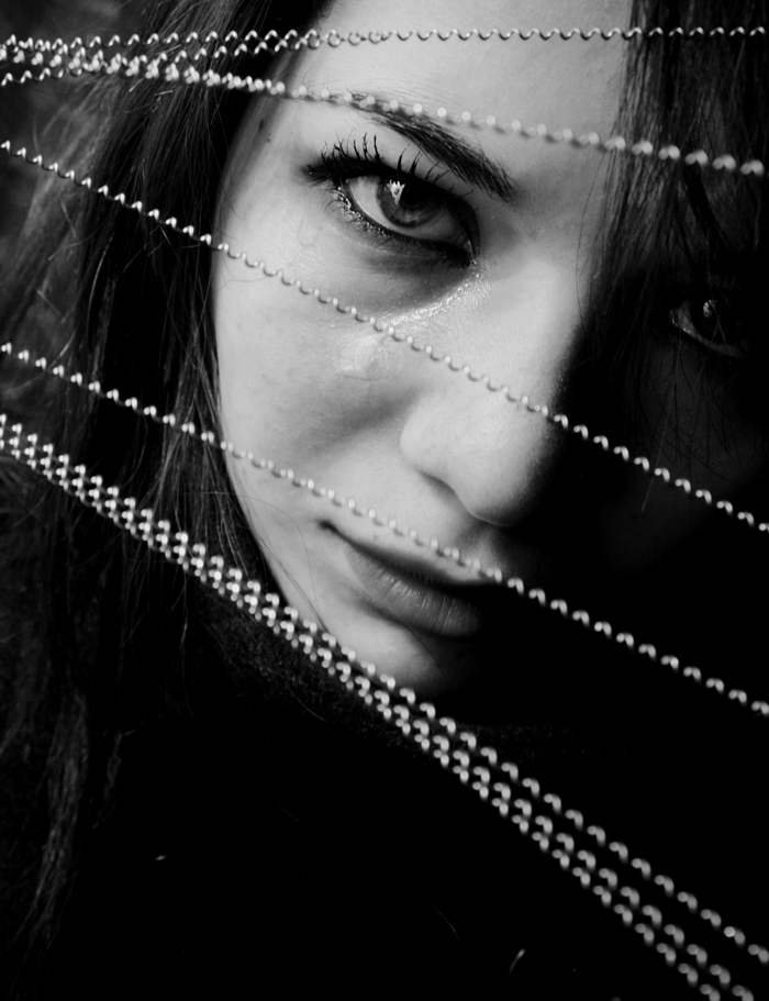 L'unica cosa che mi desta perplessità sono le maglie metalliche. Credo che un'immagine del genere si sarebbe retta da sola, senza rimandi simbolici dinanzi al soggetto.