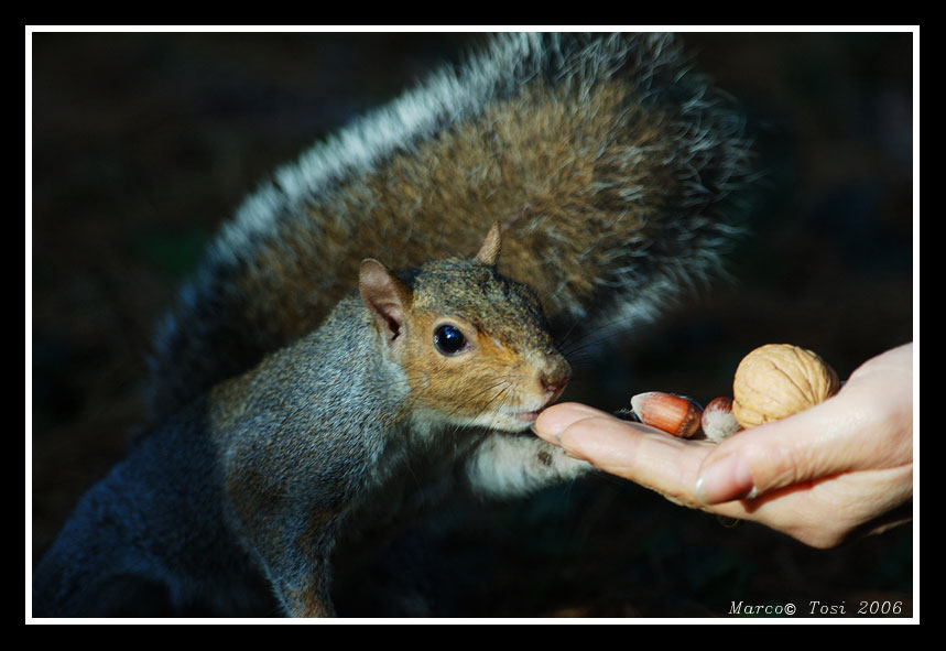 Bellissima e dolcissima. (adoro gli scoiattoli) ma la foto è bella a prescindere.